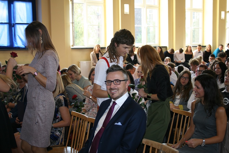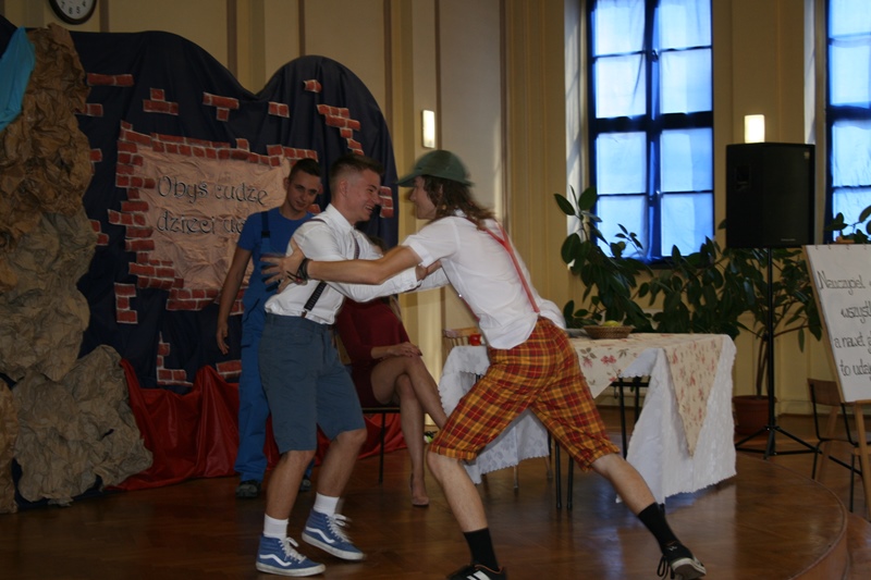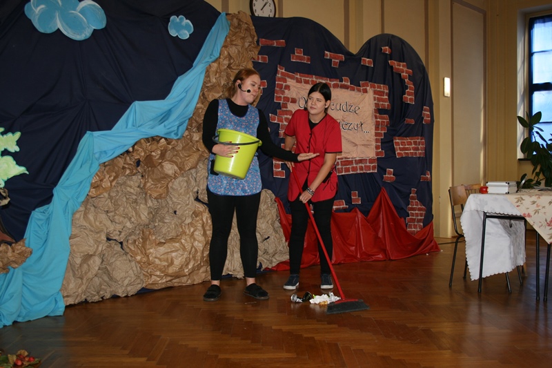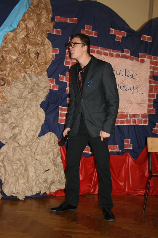 W piątek 12 października świętowaliśmy w Ekonomiku Dzień Nauczyciela. Utworzona z potrzeby chwili formacja kabaretowo – teatralna „Świeży cement” przygotowała na tę okoliczność spektakl pt.: „Obyś cudze dzieci uczył, czyli skąd się wziął nauczyciel” oraz „profesjonalne” 🙂 warsztaty dla uczniów i nauczycieli: „ Pracownik oświaty wie wszystko, a jak nie wie to potrafi udawać, że wszystko wie”.