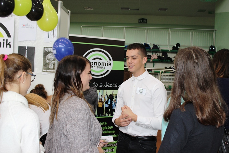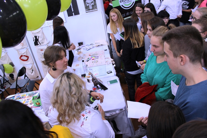 Po raz kolejny w hali Rafako odbył się Festiwal Perspektyw. Organizowana przez Wydawnictwo Nowiny impreza, trwała w tym roku aż dwa dni – 17 – 18 września i zgromadziła liczną młodzież ostatnich klas gimnazjum i podstawówek z całego regionu. Nasi uczniowie pod opieką nauczycieli przygotowali ciekawe zadania dla młodszych kolegów, dzięki którym w bardziej wizualny, namacalny, doświadczalny sposób mogli poznać specyfikę każdego z naszych zawodów. Tradycją stały się pamiątkowe gadżety, które oprócz ulotek mogli zabrać, a nawet samodzielnie wykonać absolwenci szkół niższego szczebla również w tym roku. Zespół promujący Ekonomik postanowił mocno zaakcentować nowe logo i kolorystykę szkoły, co okazało się strzałem w dziesiątkę. Trudno było nie zauważyć ekonomistów, spedytorów, handlowców, logistyków, sprzedawców, magazynierów czy specjalistów od reklamy. Wszystkim zaangażowanym w organizację, uczestnictwo, a najbardziej w konkurowanie z nami – dziękujemy!!!
