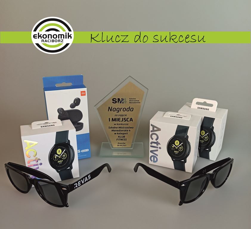 Uczniowie Michał Kiner, Paweł Stępiński i Dawid Hamiga oraz opiekun zespołu pani Marta Ogonowska otrzymali nagrody za 1. miejsce w finale w Ogólnopolskich Szkolnych Mistrzostwach Menedżerskich organizowanych  przez Fundację  Przedsiębiorczości Revas!