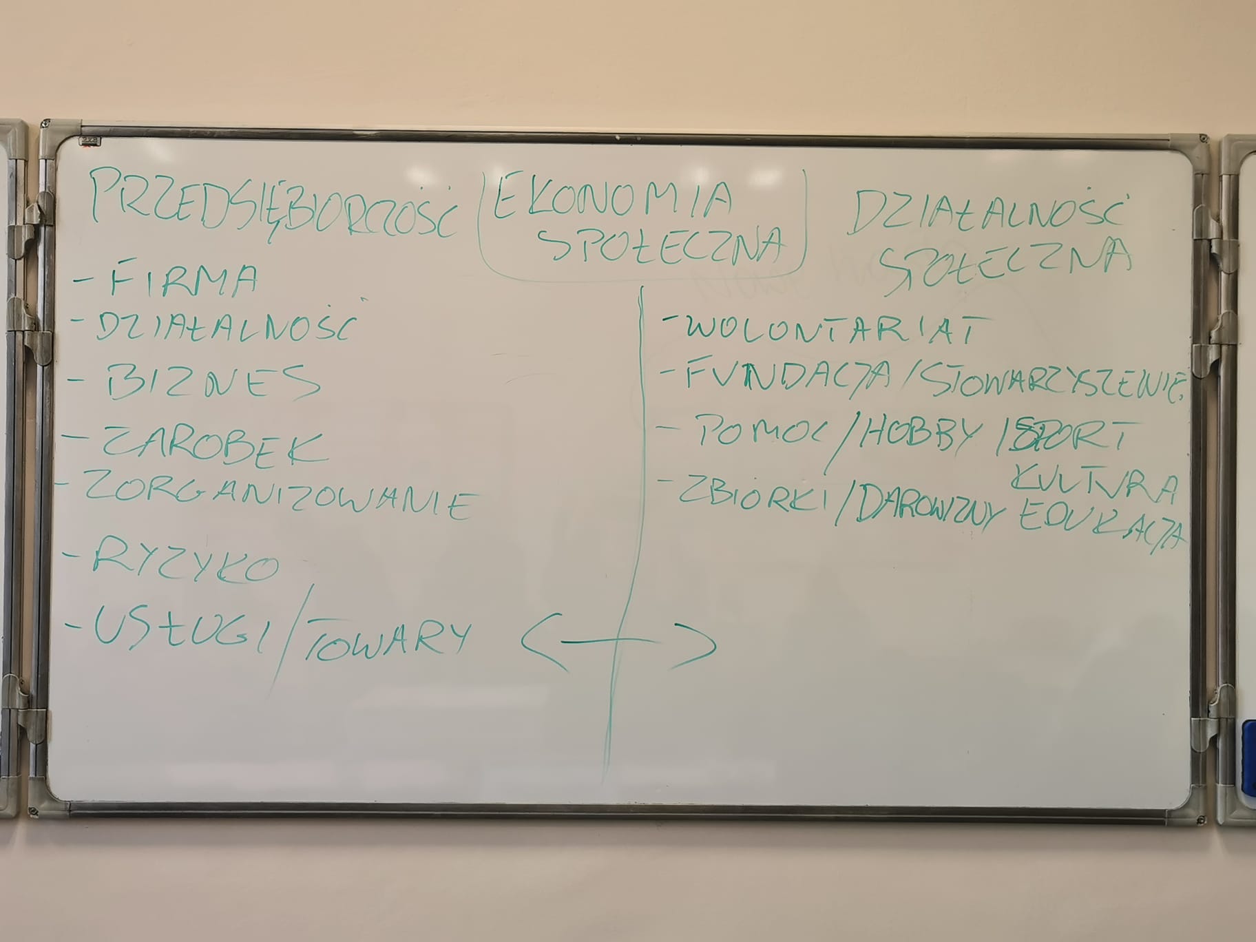 Te niezwykle ciekawe i dynamiczne zajęcia pozwoliły uczniom dowiedzieć się czym jest ekonomia społeczna oraz jak ważną rolę w aktywizowaniu i wspieraniu osób zagrożonych wykluczeniem społecznym pełnią przedsiębiorstwa społeczne. Do grup szczególnie zagrożonych wykluczeniem społecznym należą przede wszystkim osoby: długotrwale bezrobotne, bezdomne, uzależnione i izolowane. Uczniowie poznali ustawy i rozporządzenia szczególnie ważne dla sektora ekonomii społecznej i formy prawne ich prowadzenia – fundacje, spółdzielnie, towarzystwa ubezpieczeń wzajemnych, zakłady aktywności zawodowej, warsztaty terapii zajęciowej itp. Dowiedzieli się na czym polega idea banków czasu i jak można spożytkować swoją wiedzę i umiejętności dla dobra lokalnej społeczności.