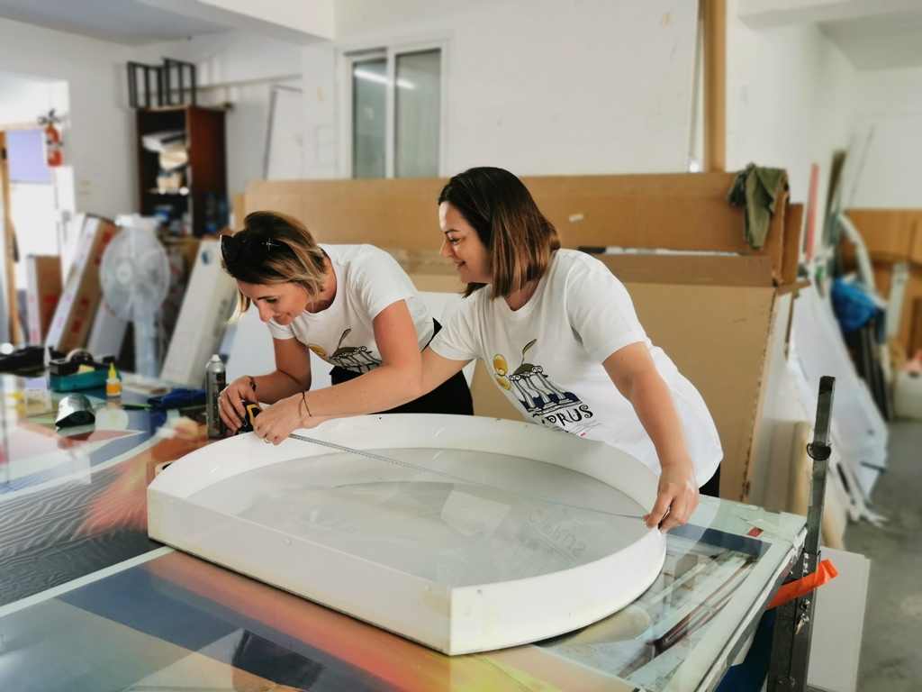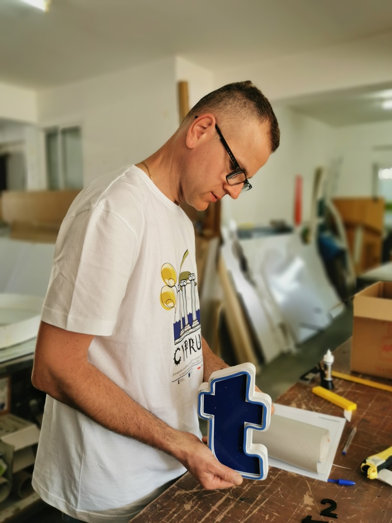 Pracując w rodzinnej firmie Focus Signs zdobyli nowe, cenne doświadczenia zawodowe, które z pewnością wykorzystają w pracy z uczniami. Podczas stażu nie tylko obserwowali proces projektowania i tworzenia materiałów reklamowych, pracę obrabiarki CNC czy druk na folii monometrycznej ale pomagali także w wykonywaniu elementów reklamy zewnętrznej: liter styrodurowych, neonów czy kasetonów świetlnych. Odwiedzili także firmę Michalis Theodosiou, gdzie obserwowali tworzenie stron internetowych oraz agencję reklamową Opsis, w której zgłębili wiedzę na temat obsługi klienta i sporządzania dokumentacji w tym briefu reklamowego.