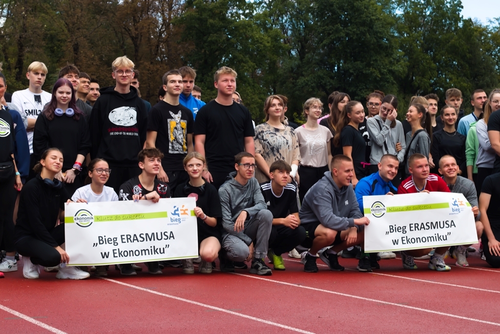 W ramach Europejskiego Tygodnia Sportu uczniowie Ekonomika po raz czwarty pobiegli w Biegu Erasmusa. Na stracie stanęło 72 uczestników podzielonych na 4-osobowe drużyny wspieranych przez drużynę nauczycieli pod wodzą pana dyrektora. Zadaniem uczestników było pokonać jak najdłuższy dystans w czasie 45 minut. Pogoda dopisała i o godzinie 9.00 uczniowie wyruszyli na stadion OSiR w Raciborzu. Rozgrzewkę poprowadziła niezastąpiona pani Katarzyna Dudys-Nowak i tak przygotowani mogliśmy rozpocząć zawody.