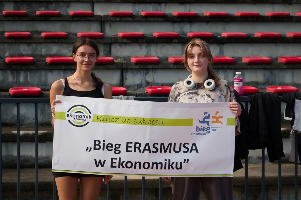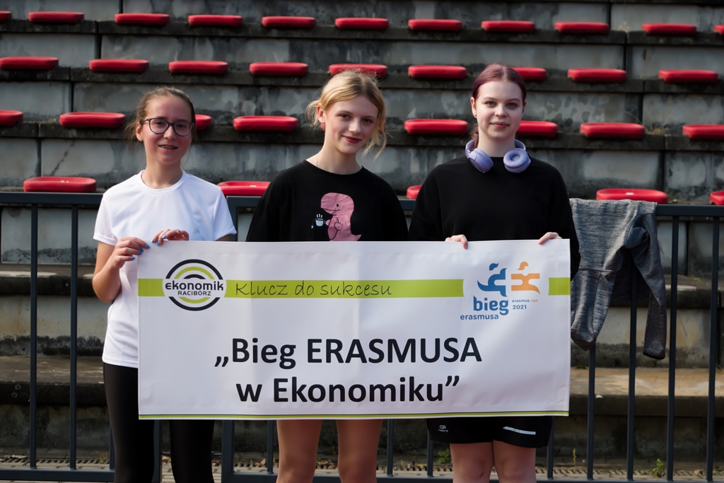 W ramach Europejskiego Tygodnia Sportu uczniowie Ekonomika po raz czwarty pobiegli w Biegu Erasmusa. Na stracie stanęło 72 uczestników podzielonych na 4-osobowe drużyny wspieranych przez drużynę nauczycieli pod wodzą pana dyrektora. Zadaniem uczestników było pokonać jak najdłuższy dystans w czasie 45 minut. Pogoda dopisała i o godzinie 9.00 uczniowie wyruszyli na stadion OSiR w Raciborzu. Rozgrzewkę poprowadziła niezastąpiona pani Katarzyna Dudys-Nowak i tak przygotowani mogliśmy rozpocząć zawody.